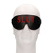 Bold cutout lettering reveals a vibrant red layer beneath, creating an eye-catching statement piece that combines playful confidence with sensory deprivation. The stitched faux leather construction ensures comfort and durability, making it an essential addition to your collection of pleasure accessories.